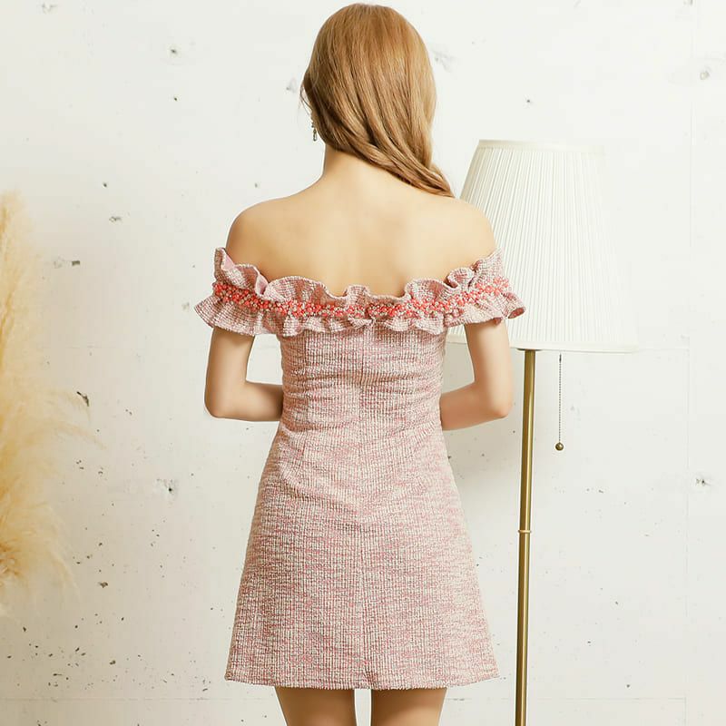 4. [Angel-R/エンジェルアール] 高級バストオフショルダーパールビジューフリルオフショルダーフレアミニドレス