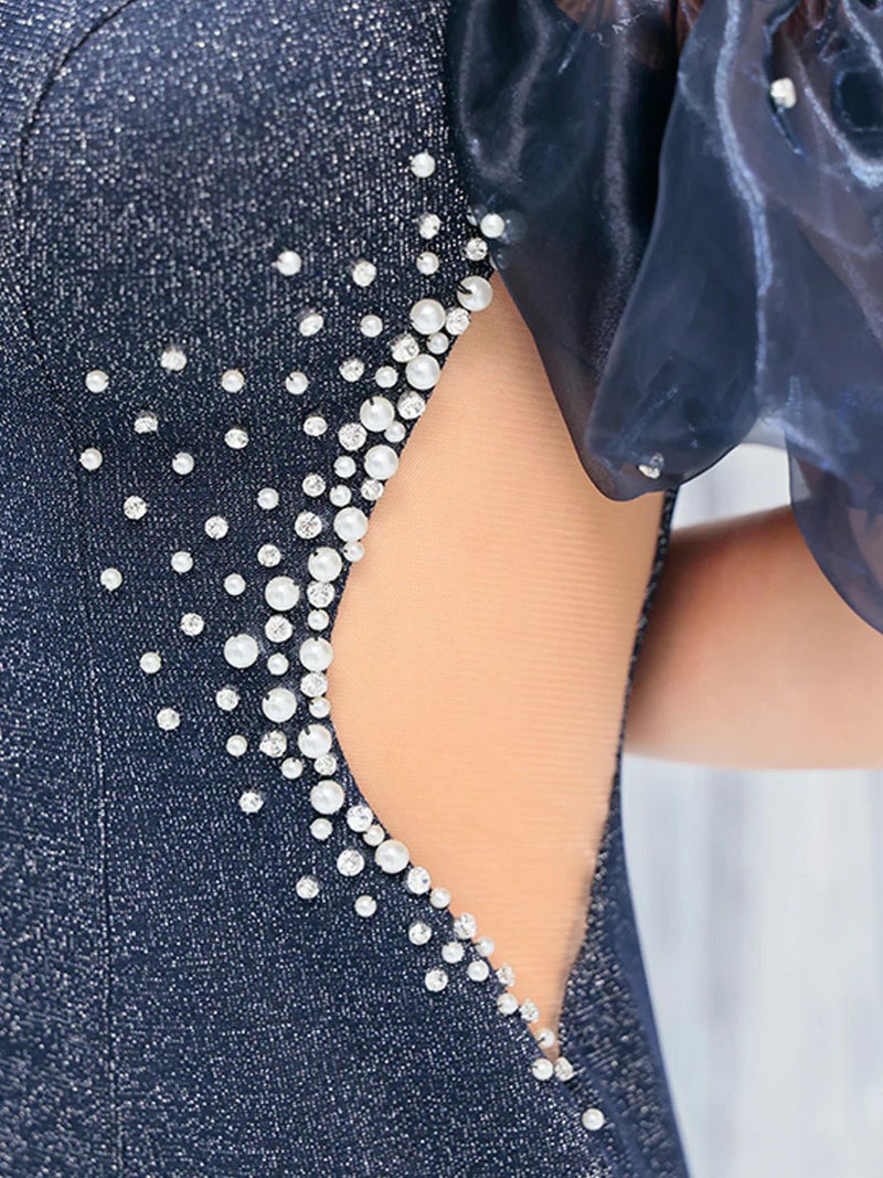 5. [Angel-R/エンジェルアール] 高級肩出し 二の腕カバーくびれバルーンスリーブビーズラメタイトミニドレス
