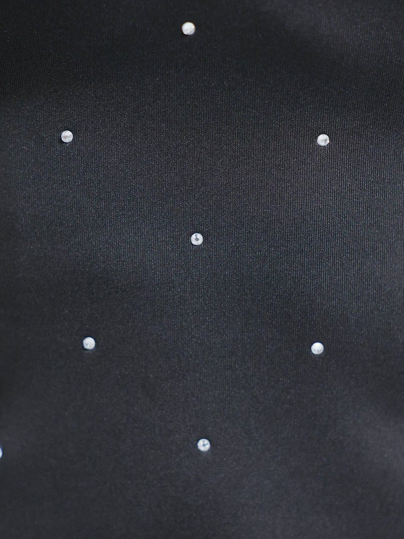 3. [Angel-R/エンジェルアール] 高級 オフショルダー フリル ドット柄 ビジューストーン バストカット 谷間魅せ タイトミニドレス