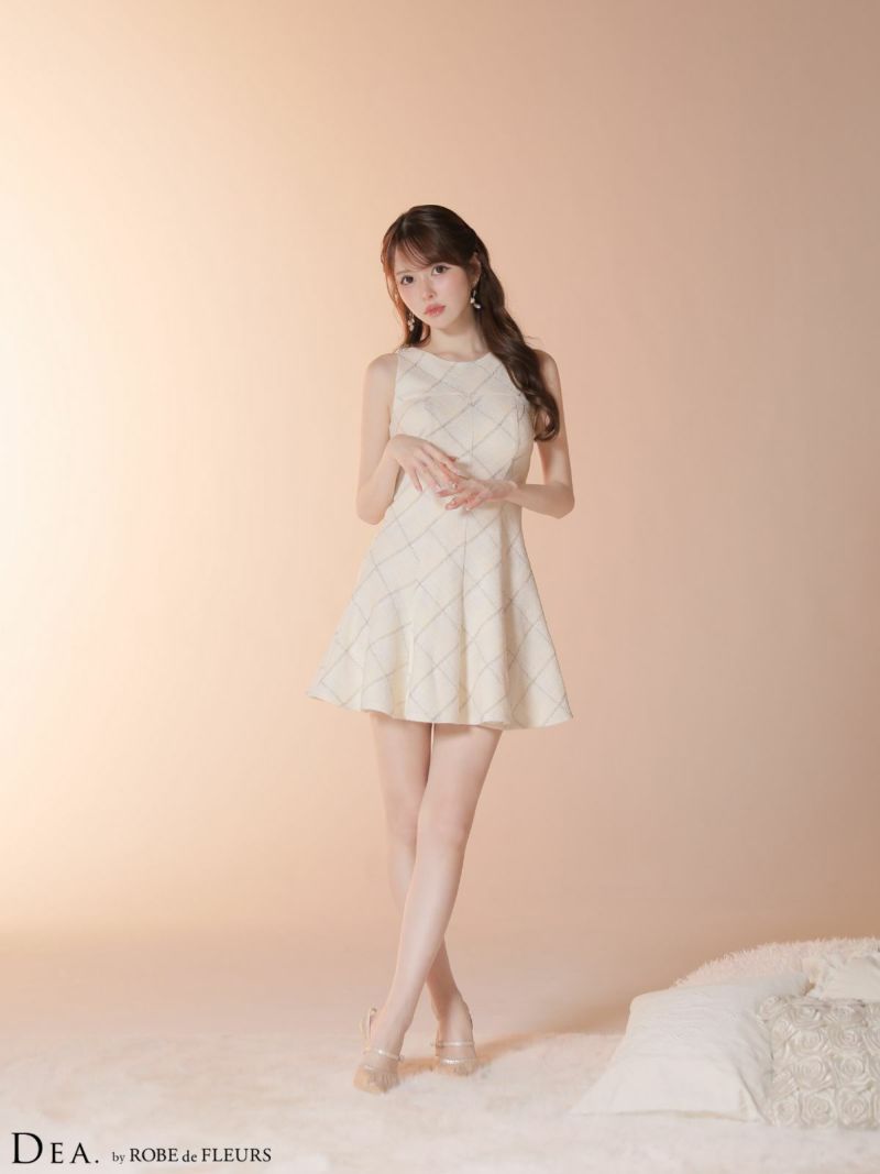 上品な可愛さ溢れる♡ [DEA.byROBEdeFLEURS/ディアバイローブドフルール] 高級 ブランド ワンピース Aラインミニドレス ノースリーブ チェック柄 ツイード 大人
