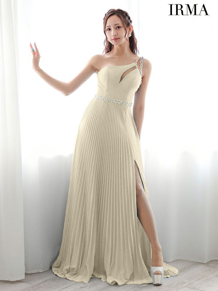 品のあるエレガントデザイン♪ [IRMA/イルマ] 高級 バースデー ワンショルダー バストカット ビジュー 谷間魅せ Aラインロングドレス