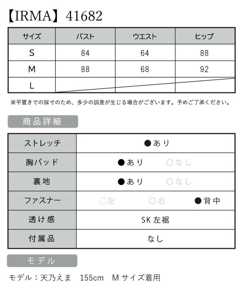 B.W.Hの3サイズは平置き計測した数字を2倍して記載してあります。