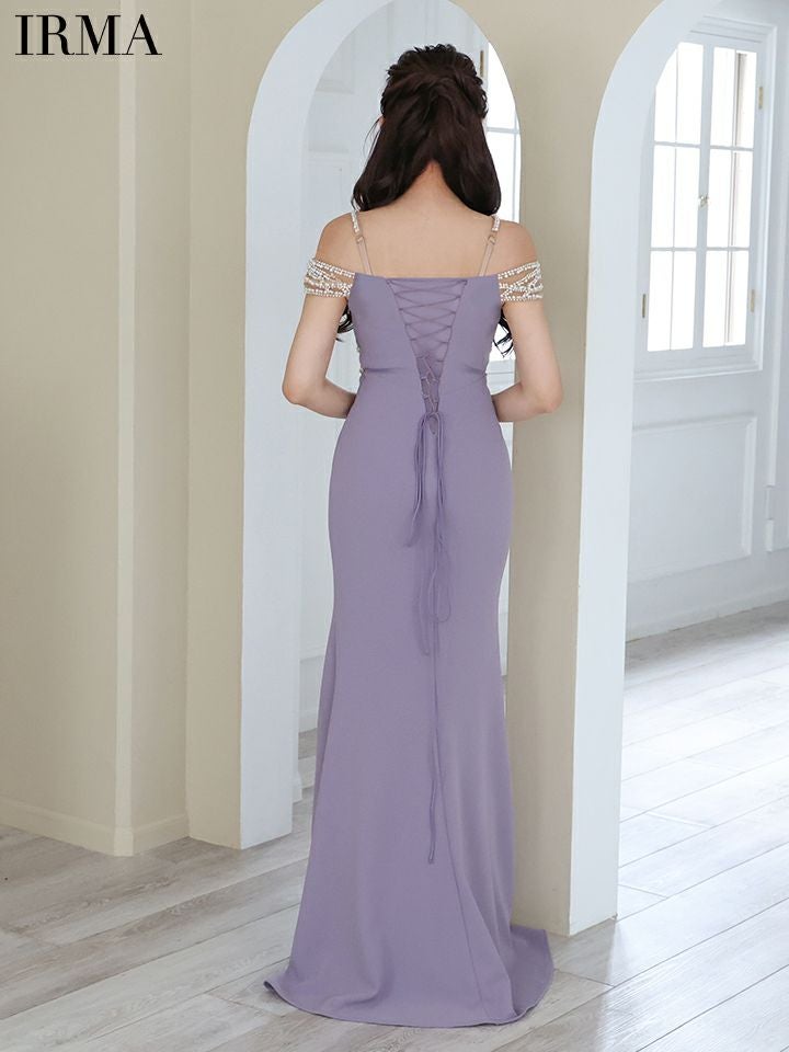 高級感溢れるエレガントなロングドレス☆ [IRMA/イルマ] 高級 バースデー 肩出し 二の腕カバー フラワービジュー くびれ バストコード 谷間魅せ タイトロングドレス