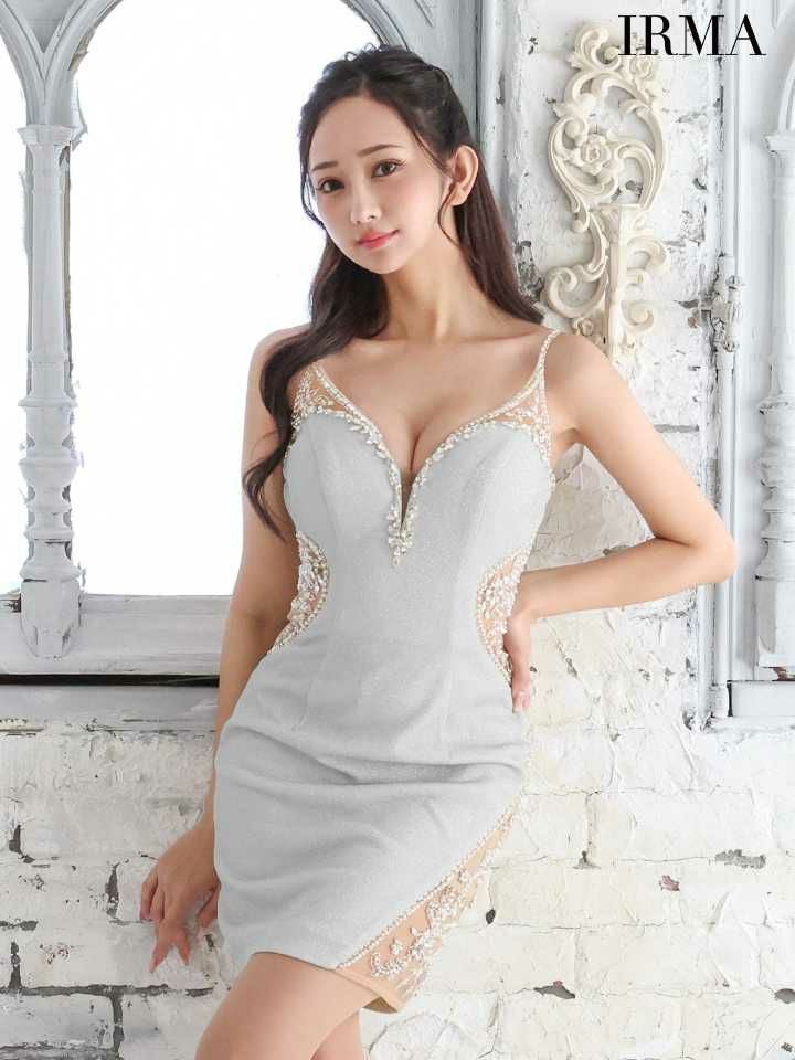 煌めくビジューで魅了する♡ [IRMA/イルマ] 高級 ブランド タイトミニドレス 谷間 キャミソール ビジュー くびれ ラメニット