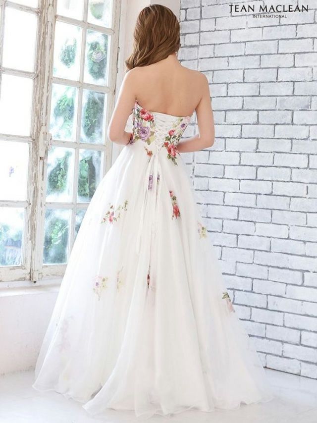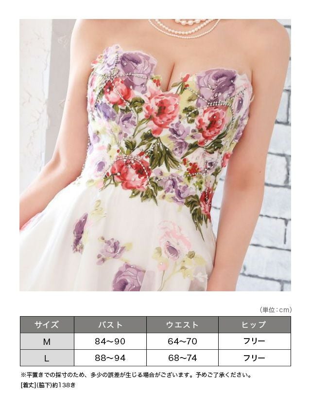 5. [JEANMACLEAN/ジャンマクレーン] 高級 バースデーフラワースパンコールベアトップボリュームAラインロングドレス