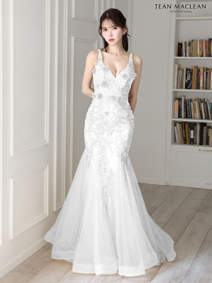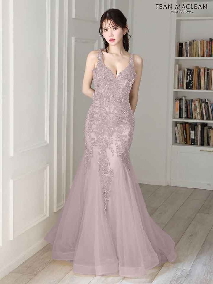 4. [JEANMACLEAN/ジャンマクレーン] 高級 バースデーフラワー刺繍レースノースリーブタイトロングドレス