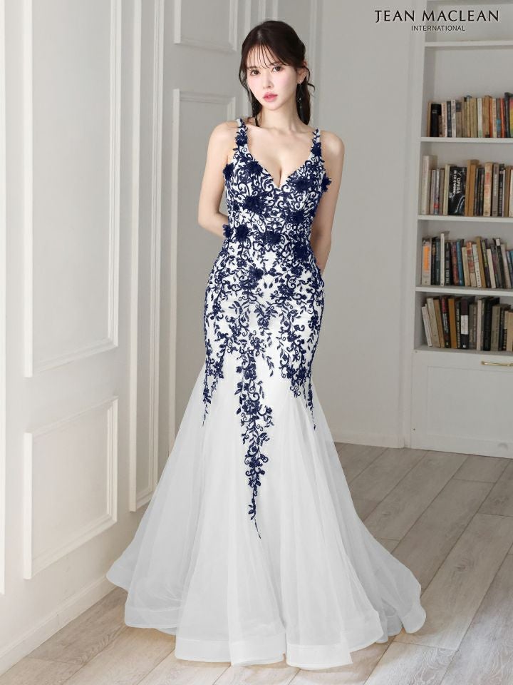 5. [JEANMACLEAN/ジャンマクレーン] 高級 バースデーフラワー刺繍レースノースリーブタイトロングドレス