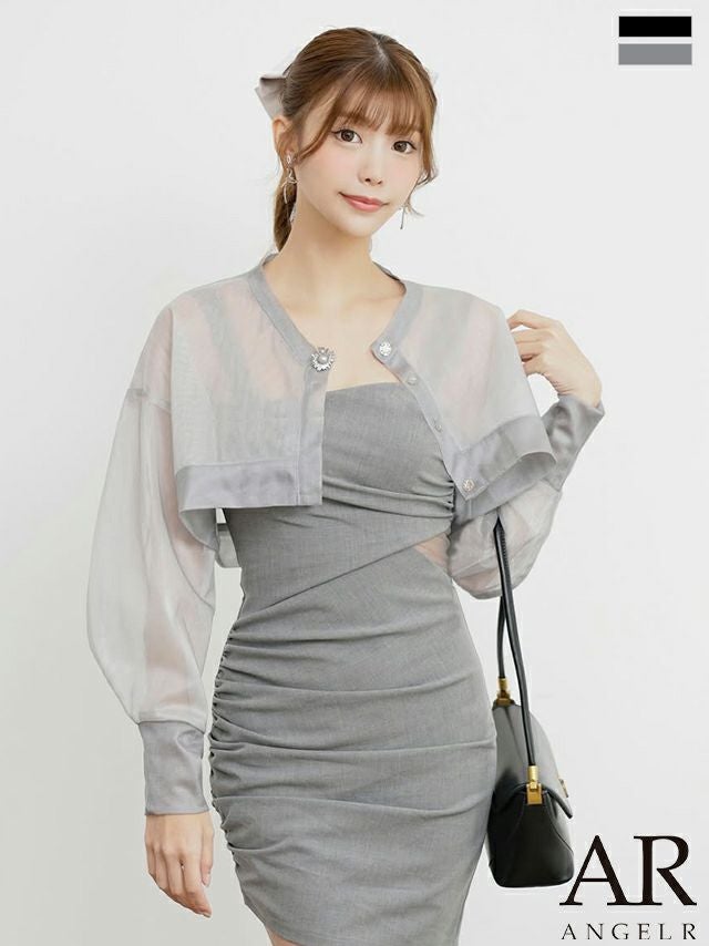キャバドレス ボレロ Angel-R エンジェルアール 高級 ブランド ロングスリーブ ショート ボレロ 袖あり シアー メッシュ ボタン