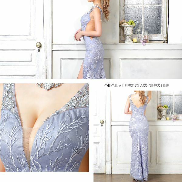 4. [Angel-R/エンジェルアール] 高級花柄刺繍レース×ビジューくびれデザインロングドレス