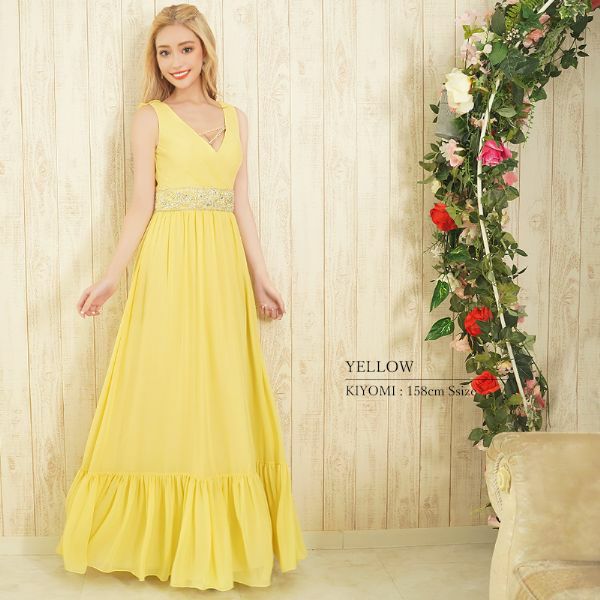 5. [Angel-R/エンジェルアール] 高級ノースリーブウエストビジューバックオープンフリルAラインロングドレス