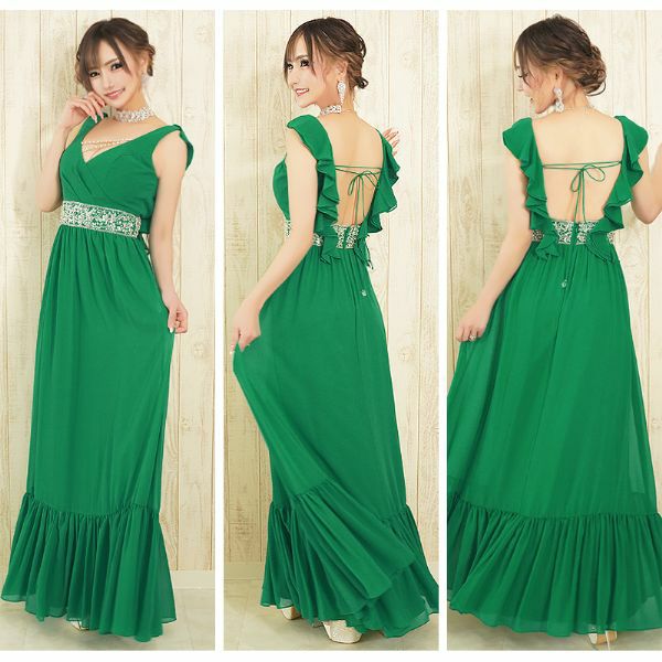 3. [Angel-R/エンジェルアール] 高級ノースリーブウエストビジューバックオープンフリルAラインロングドレス