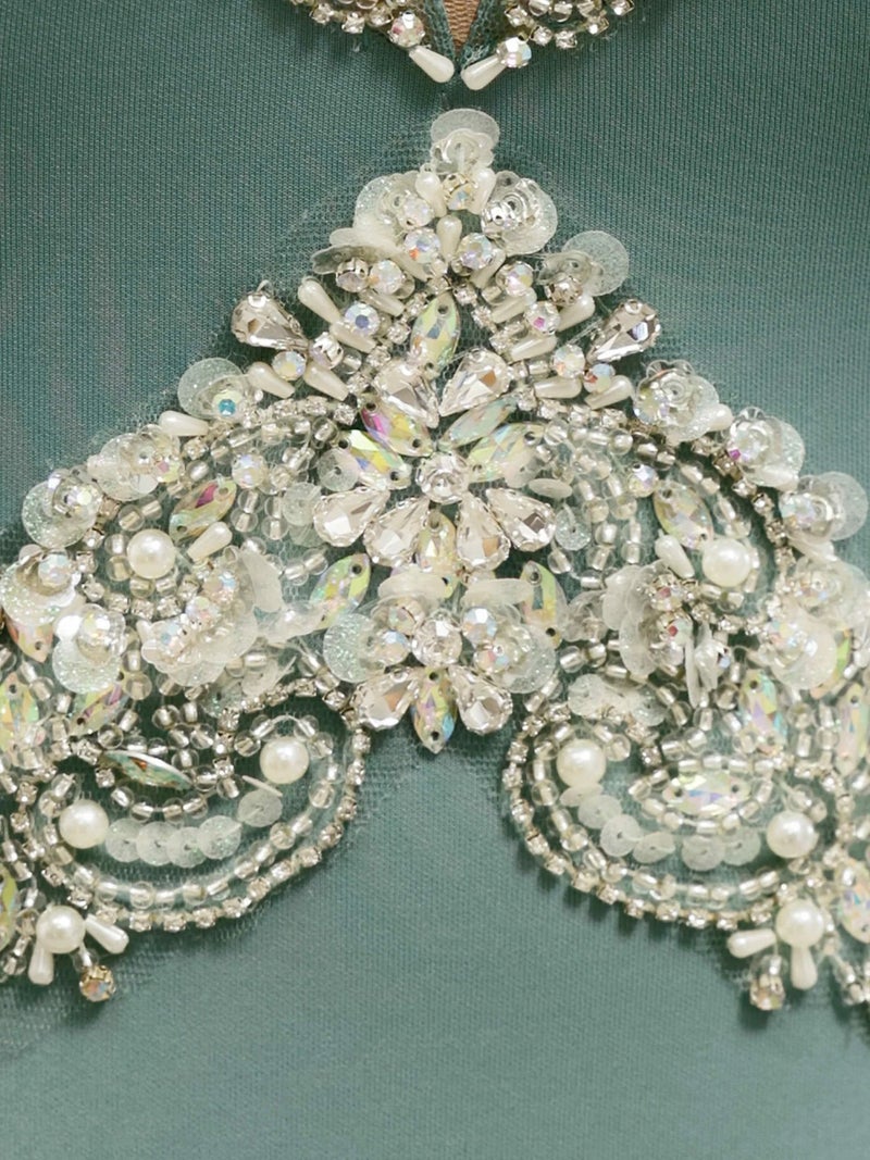 4. [Angel-R/エンジェルアール] 高級 ブランド タイトロングドレス 谷間 キャミソール パール くびれ透け ビジュー スリット