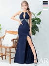 大胆な肌見せで周囲を魅了する♡ [Angel-R/エンジェルアール] 高級 ビジュー ホルターネック バストカット くびれ 谷間魅せ タイトロングドレス