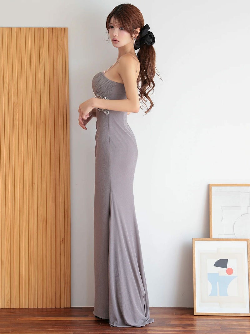 4. [Angel-R/エンジェルアール] 高級 ブランド タイトロングドレス 谷間 キャミソール ベアトップ 2way ウエストビジュー タックデザイン (伊藤舞雪着用)