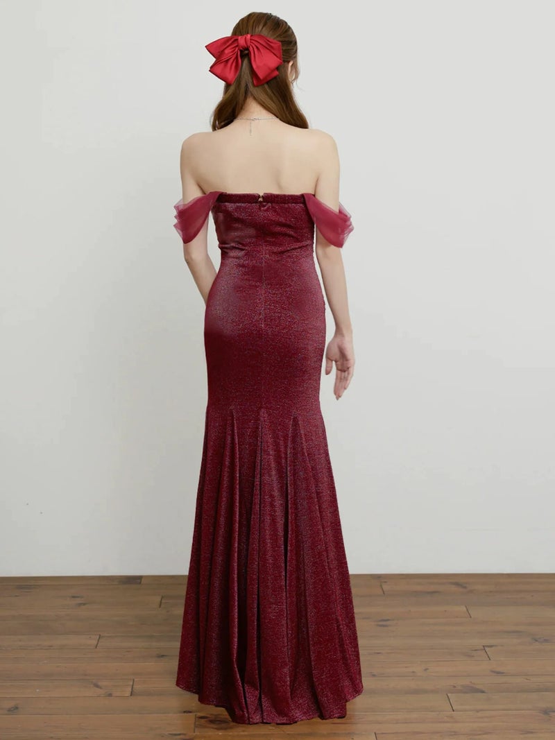 4. オフショルダー 高級ロングドレス