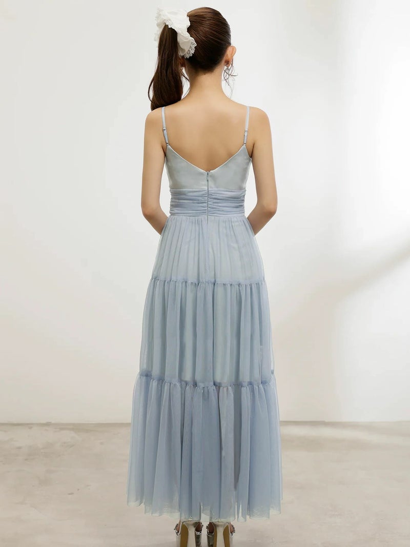 チュールスカートで動いても可愛い♡ [Angel-R/エンジェルアール] 高級 ブランド Aラインロングドレス 谷間 キャミソール スパンコール ティアード チュール