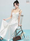 軽やかに揺れるスカートが美しい♡ [Angel-R/エンジェルアール] 高級 ブランド Aラインロングドレス 谷間 キャミソール ドット柄 バストタック サテン