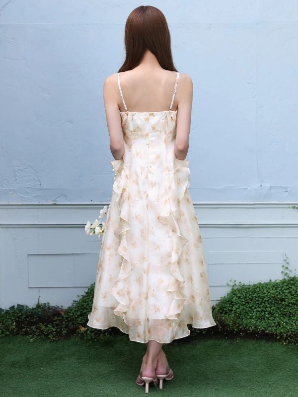 透明感と女性らしさをふんわり纏う♡ 予約商品【3月中旬入荷予定】[Angel-R/エンジェルアール] 高級 ブランド Aラインロングドレス キャミソール 胸元リボン フラワープリント フリル シフォン