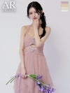 特別な日にもおすすめ♡ [Angel-R/エンジェルアール] 高級 ブランド Aラインロングドレス 谷間 ホルターネック ウエストカット ヘムラインチュール ビジュー