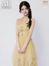 ふんわりチュールが美しい♡ [Angel-R/エンジェルアール] 高級 ブランド Aラインロングドレス 谷間 ホルターネック ウエストカット ヘムラインチュール ビジュー
