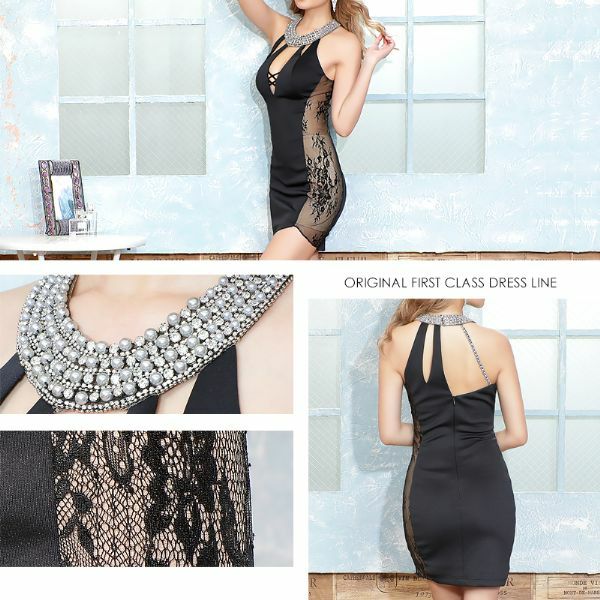5. [Angel-R/エンジェルアール] 高級ビジューバストクロスデザインホルターネックサイドレースタイトミニドレス