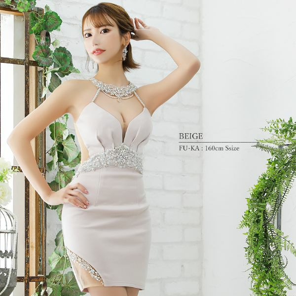 5. [Angel-R/エンジェルアール] 高級ウエスト総ビジューデコルテチェーンパールくびれタイトミニドレス