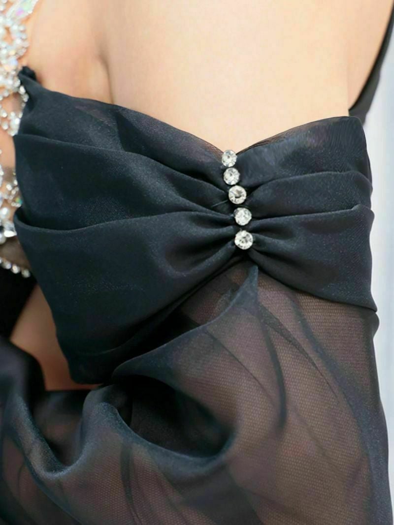6. [Angel-R/エンジェルアール] 高級 ブランド タイトミニドレス 袖あり 長袖 ホルターネック 肩出し 二の腕カバー 谷間 くびれ ビジュー バストカット (めぐりっぷ着用)