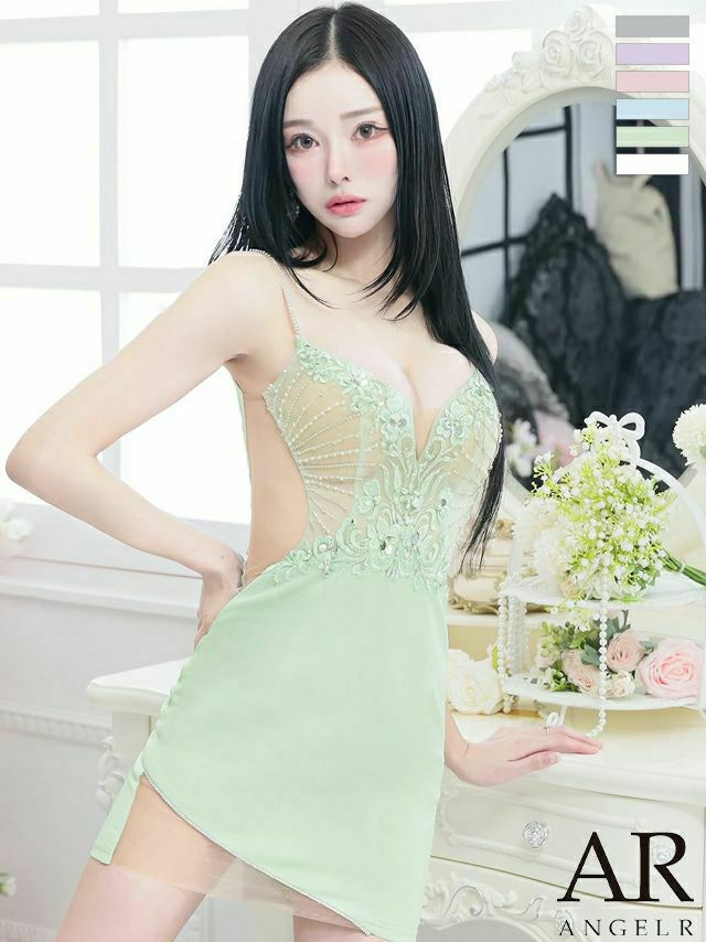 sexyな肌見せを叶える♡ [Angel-R/エンジェルアール] 高級 ブランド タイトミニドレス キャミソール 谷間 刺繍レース バストシースルー くびれ ビジュー (伊藤舞雪着用)