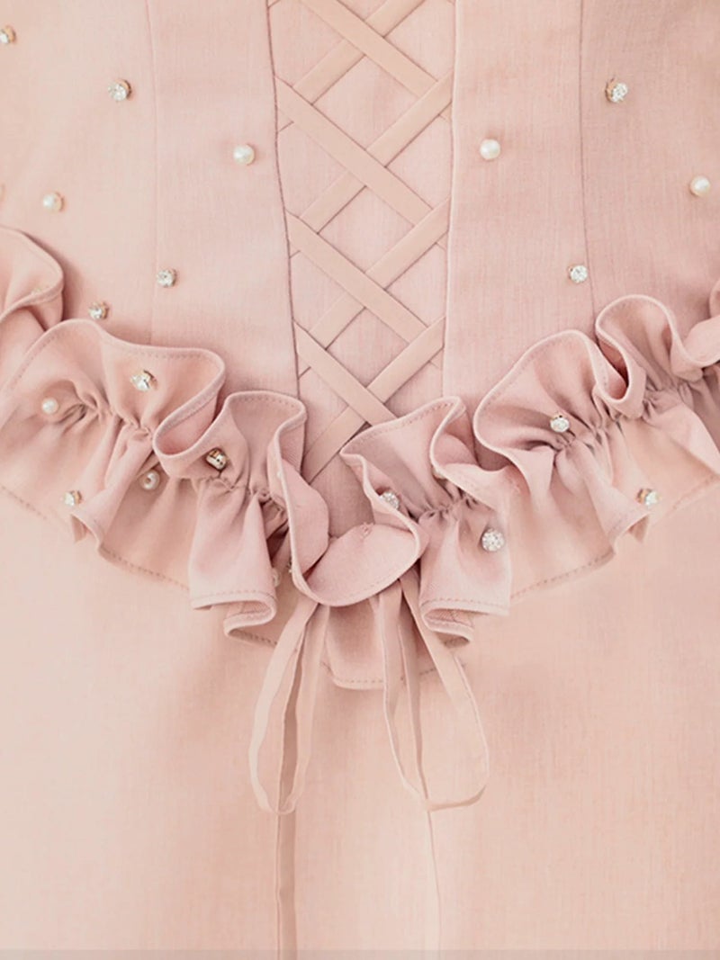 CUTEなフリルで女子力アップ♡ [Angel-R/エンジェルアール] 高級2wayベアデザイン胸元フリルレースアップビジューフレアミニドレス