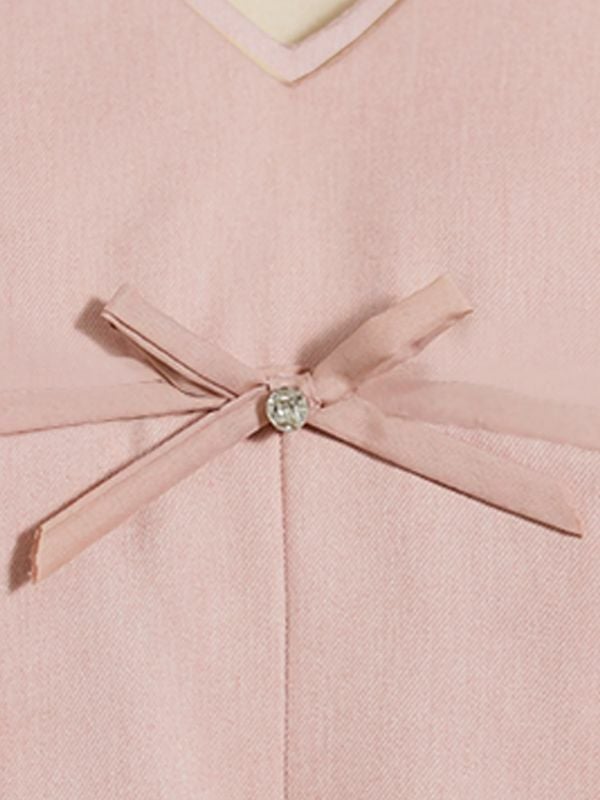 胸元のプリーツ×リボンがCUTE♡ [Angel-R/エンジェルアール] 高級 ノースリーブ Vネック 胸元リボン ビジュー フレアミニドレス