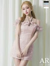 誰よりも可愛く目立てる♡ [Angel-R/エンジェルアール] 高級 2way オフショルダー 胸元フリル スパンコール フレアミニドレス