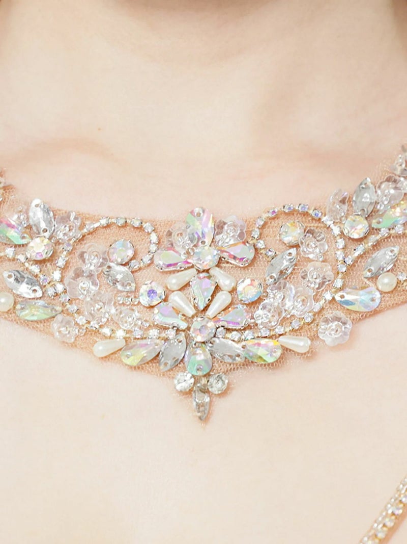 4. [Angel-R/エンジェルアール] 高級 ビジューホルターネック バストコード 谷間魅せ パールチェーン セクシー タイトミニドレス