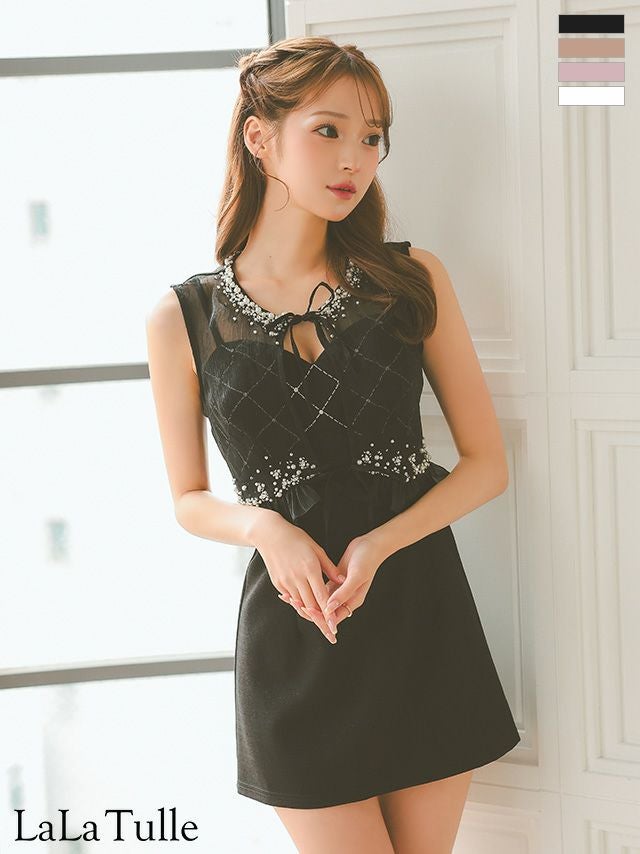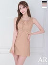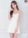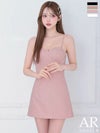 4. [Angel-R/エンジェルアール] 高級 ブランド Aラインミニドレス ノースリーブ 2way キャミソール チェック柄 谷間 バストカット フリルレース リボン ビジュー (れむ着用)