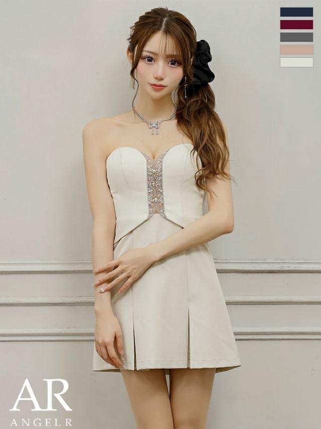 大人の可愛さ溢れるデザイン♡ [Angel-R/エンジェルアール] 高級 ブランド フレアミニドレス 谷間 ホルターネック ネックリボン ベアトップ 2way プリーツスカート ビジュー