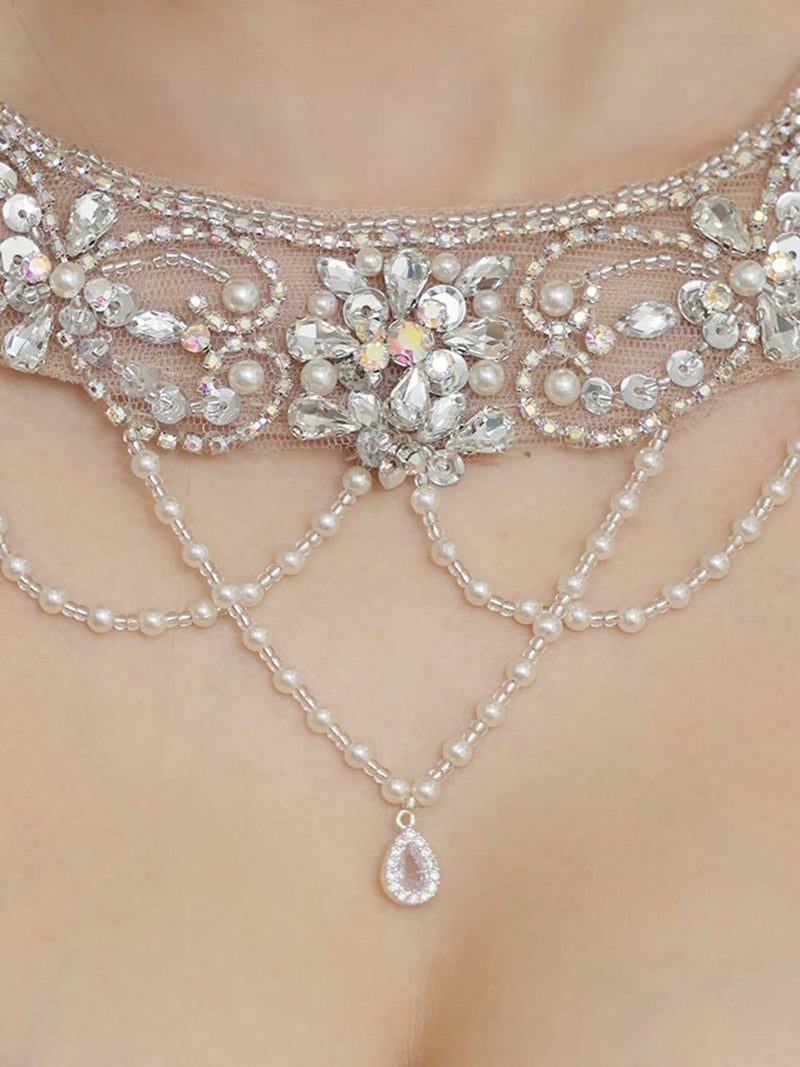 4. [Angel-R/エンジェルアール] 高級 ブランド タイトミニドレス 谷間 大人 ホルターネック くびれ透け パールチェーン ラメ ビジュー