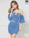 女性らしいボディラインを演出☆ [Angel-R/エンジェルアール] 高級 2way オフショルダー セットアップ シフォンスリーブ バストカット ビジュー タイトミニドレス