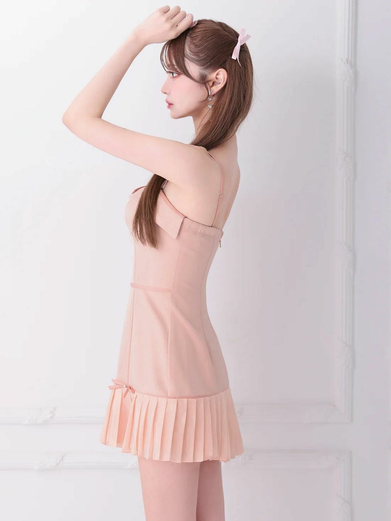 4. [Angel-R/エンジェルアール] 高級 2way ベアトップ キャミソール リボン バイカラー プリーツ フレアミニドレス
