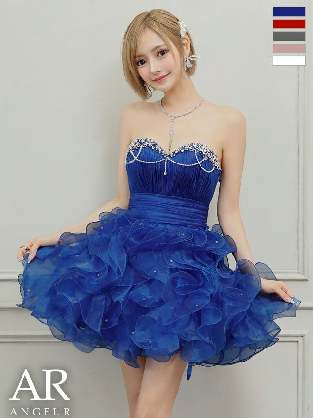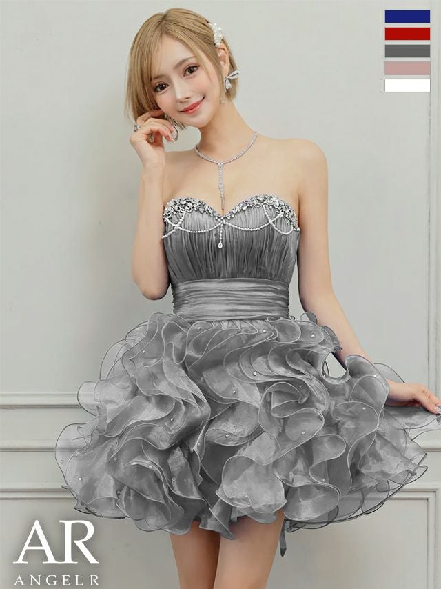 5. [Angel-R/エンジェルアール] 高級 バースデー ブランド Aラインミニドレス キャミソール 谷間 2way ベアデザイン ボリュームフリル ビジュー パール