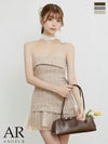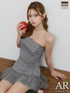ガーリーさと色っぽさを欲張りGET♡ [Angel-R/エンジェルアール] 高級 ブランド Aラインミニドレス チェック柄 ベアトップ サイドリボン チュール