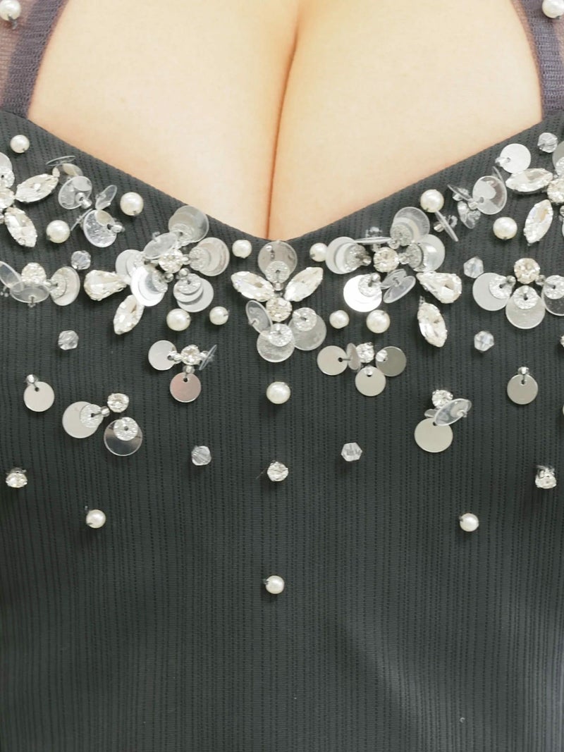 3. [Angel-R/エンジェルアール] 高級 ブランド Aラインミニドレス セットアップ ホルターネック チュール バストカット スパンコール ポケット付き