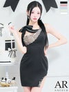 人気ドレスから新色登場♡ [Angel-R/エンジェルアール] 高級アシンメトリーノースリーブリボンくびれビジューフラワータイトミニドレス