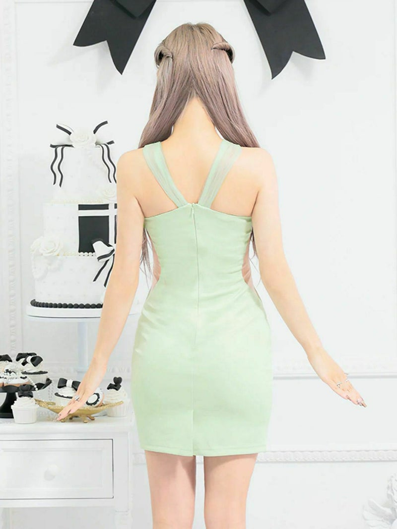 4. ウエストシースルー高級ミニドレス
