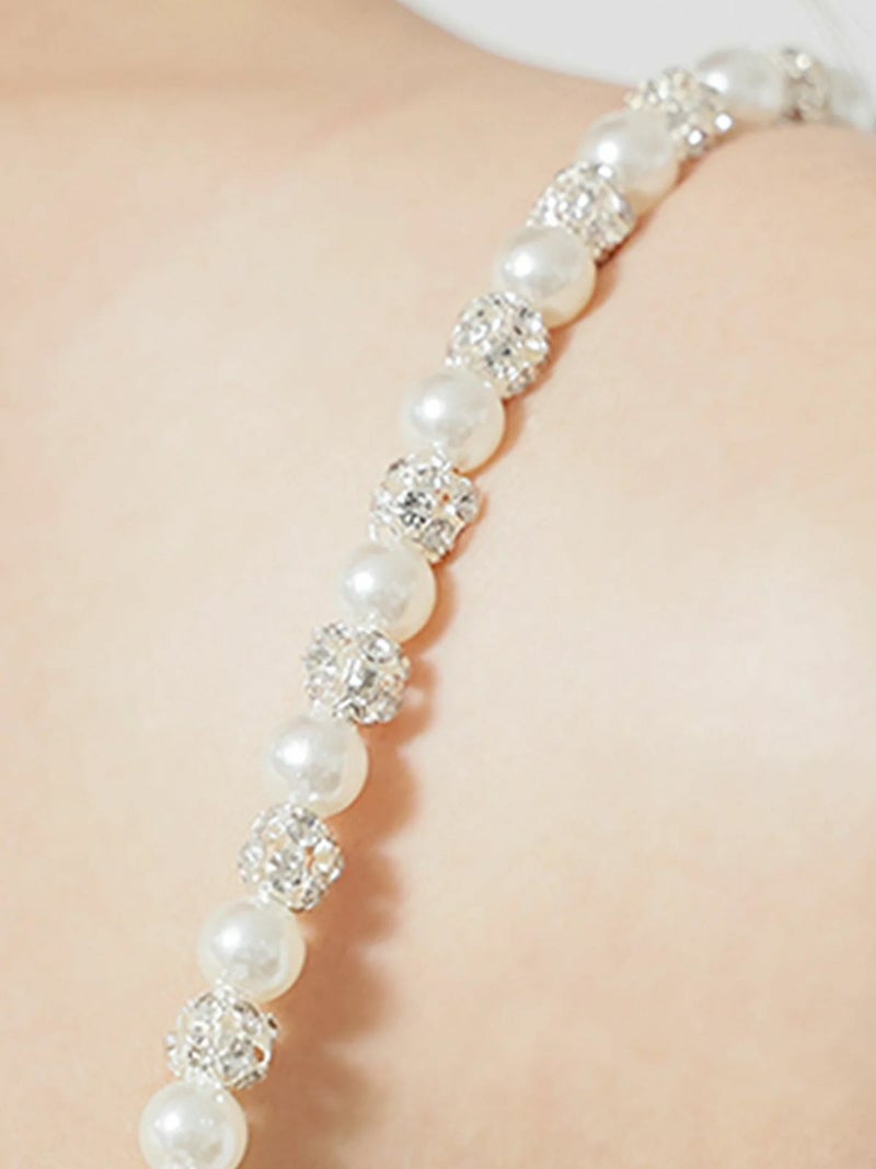 5. [Angel-R/エンジェルアール] 高級 2way ベアトップ キャミソール パールチェーン フリル リボン ビジュー フレアミニドレス