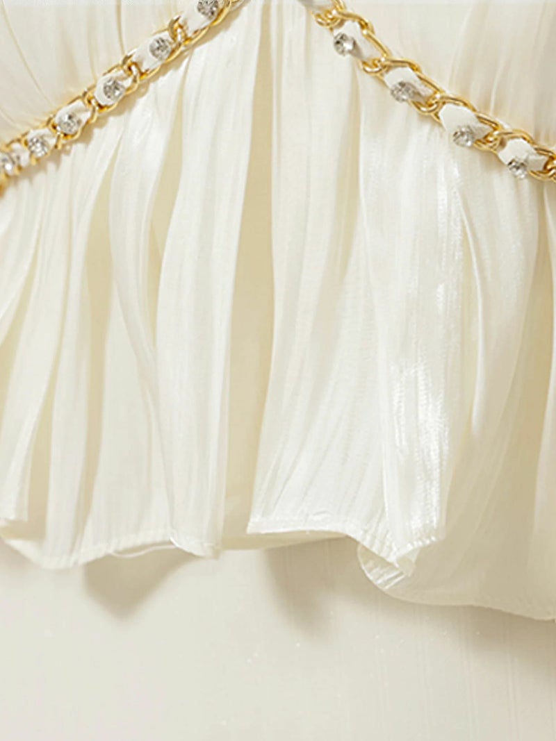 3. [Angel-R/エンジェルアール] 高級 3way 胸元フリル ベアデザイン ビジューチェーン 背中魅せ フレアミニドレス
