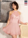 ふんわり女性らしさを纏う♡ [Angel-R/エンジェルアール] 高級 ブランド Aラインミニドレス 2way ホルターネック パール ビジュー フリル フェミニン (せな着用)