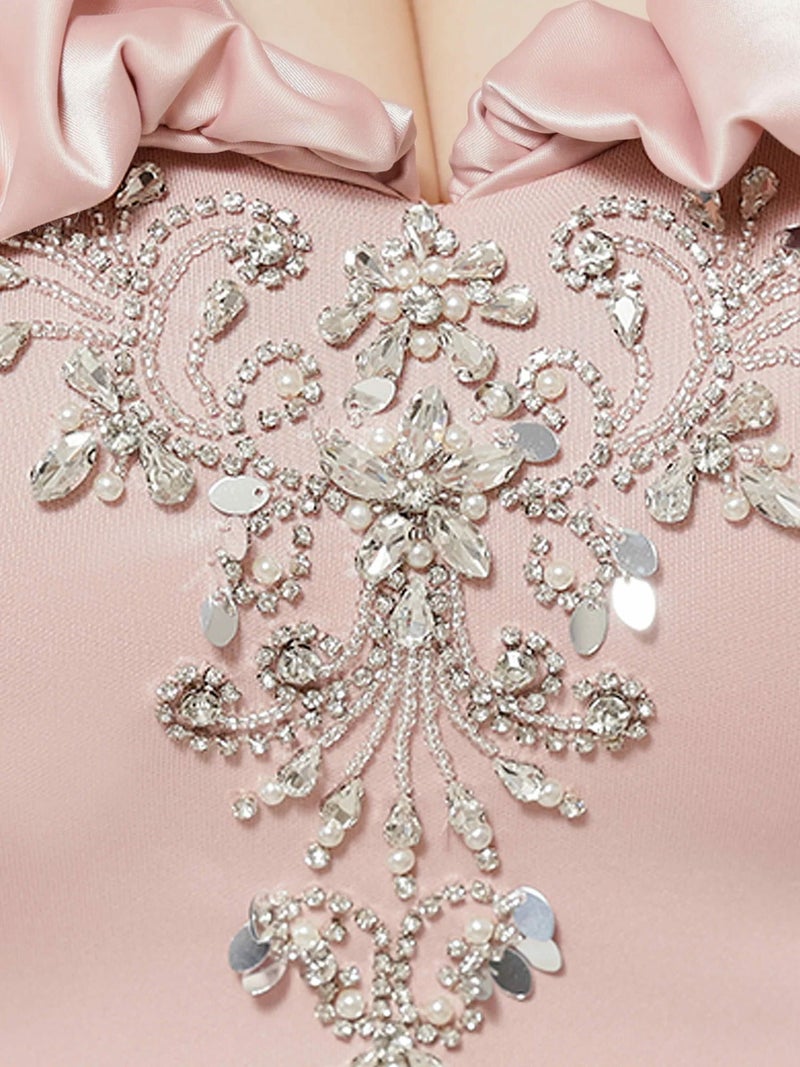 4. [Angel-R/エンジェルアール] 高級 サテン オフショルダー ビジュー刺繍 くびれ タイトミニドレス