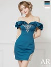 ラグジュアリーな雰囲気を纏う♡ [Angel-R/エンジェルアール] 高級 サテン オフショルダー ビジュー刺繍 くびれ タイトミニドレス
