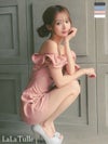 5. [Angel-R/エンジェルアール] 高級 ブランド Aラインミニドレス 谷間 オフショルダー 2way フリルスリーブ チャーム ワンカラー (れむ着用)