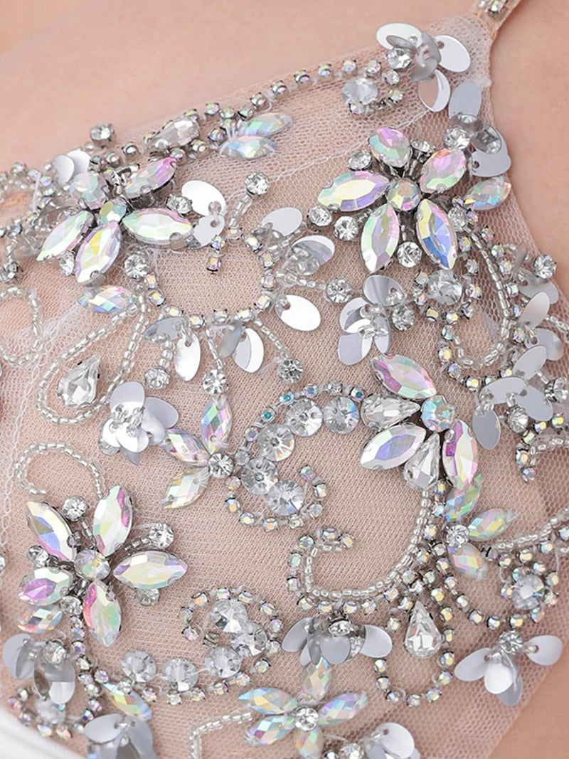 胸元のビジューがキラキラ輝く♡ [Angel-R/エンジェルアール] 高級 バストビジュー キャミソール 谷間魅せ ウエストフリル くびれ セクシー タイトミニドレス