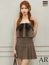 3. [Angel-R/エンジェルアール] 高級 2way ドット柄 キャミソール ベアトップ フロントリボン プリーツ セットアップ フレアミニドレス